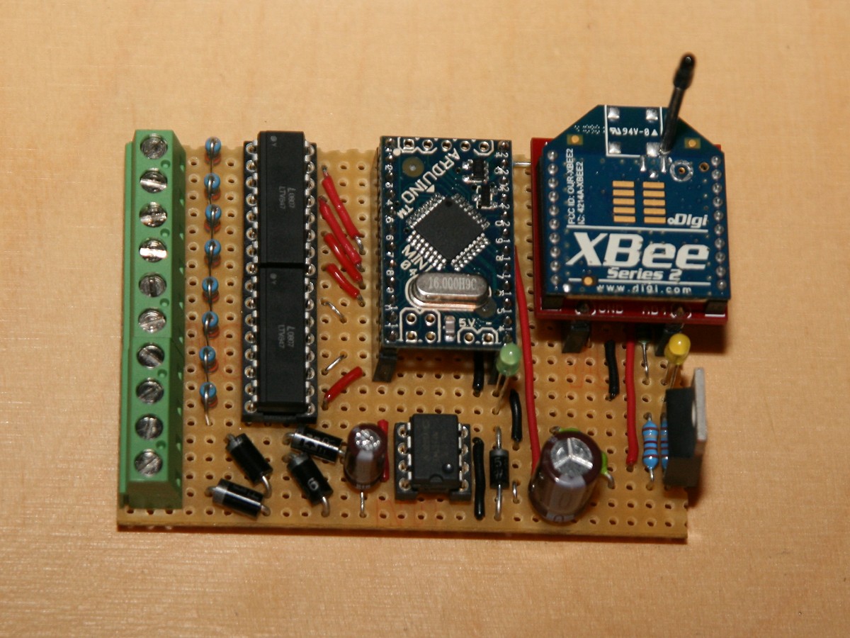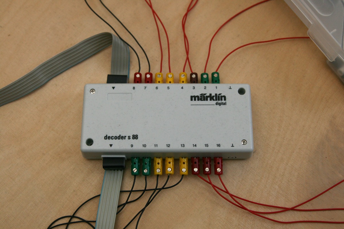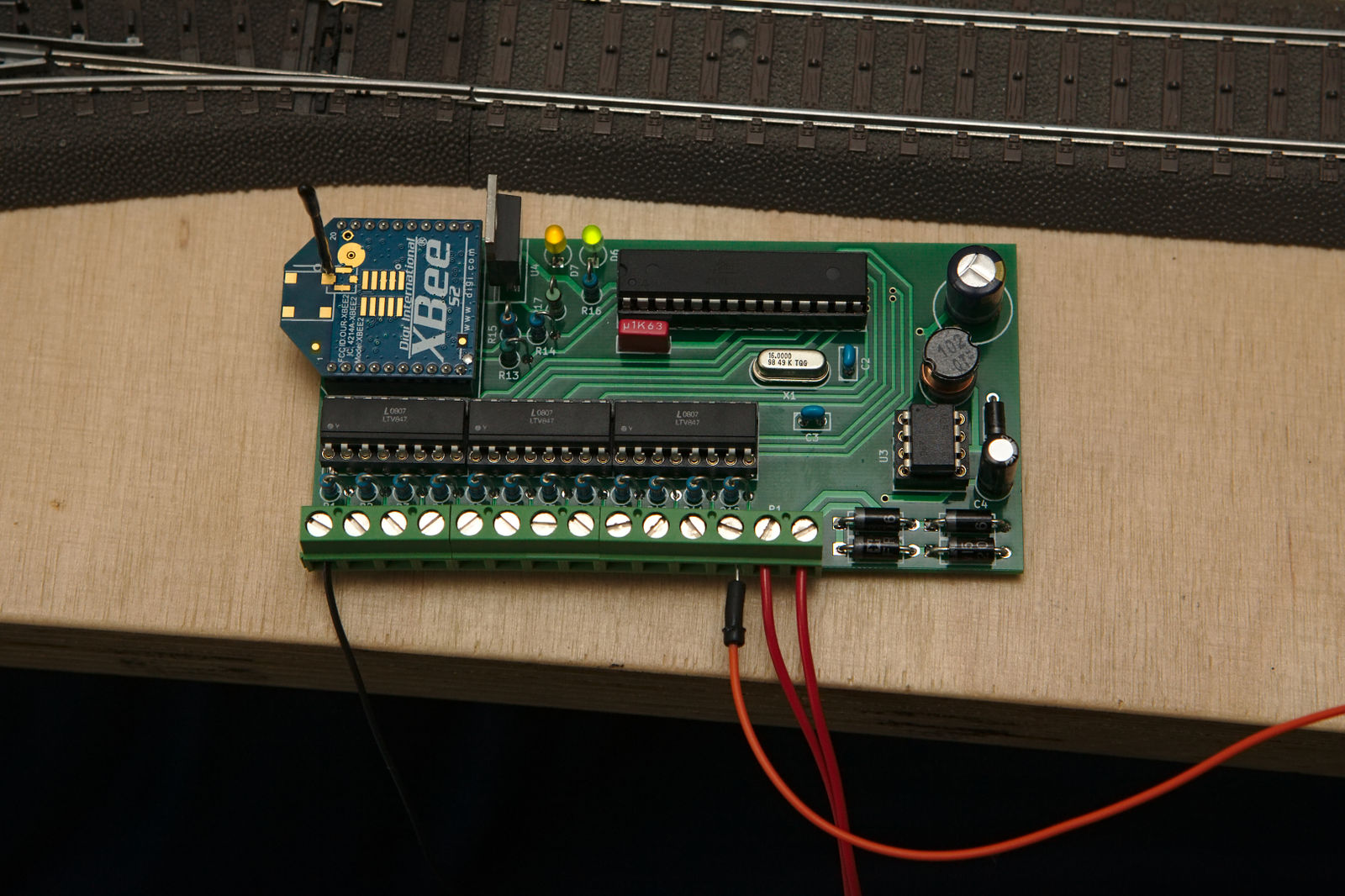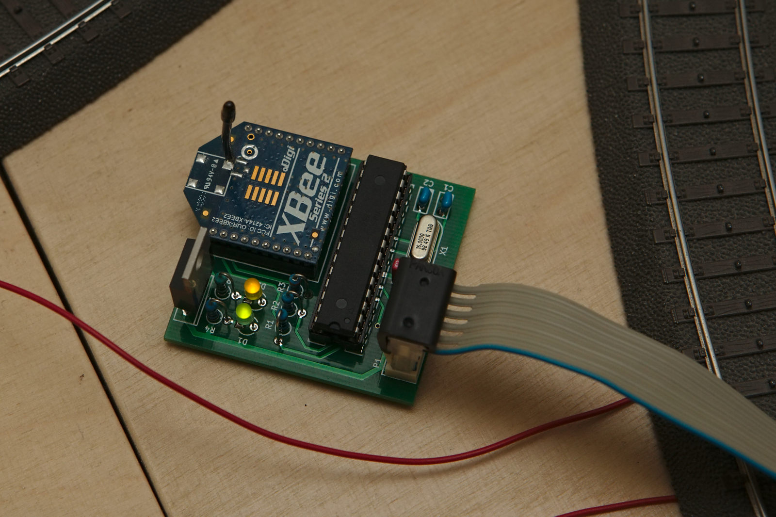 On a large layout, the wires connecting individual sensors to sensor boxes quickly become unmanageable. I've developed a wireless sensor system to reduce the clutter. It consists of a receiver module plugged to the end of the s88 bus and one or more transmitters collecting sensor data from around the layout. As a bonus, it's even cheaper per sensor than Märklin's official s88 modules.